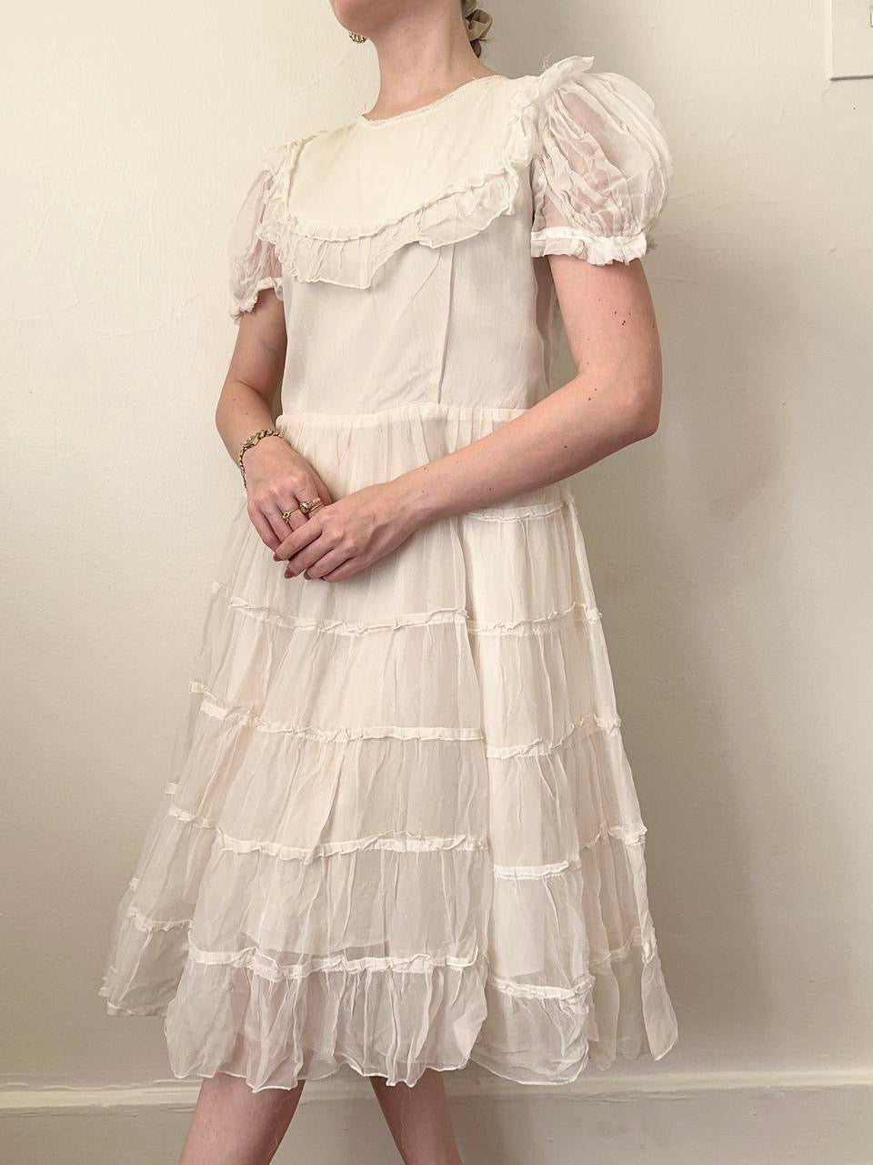 Vintage 1950s Ruffle Babydoll Cupcake Tier Mini Dress
