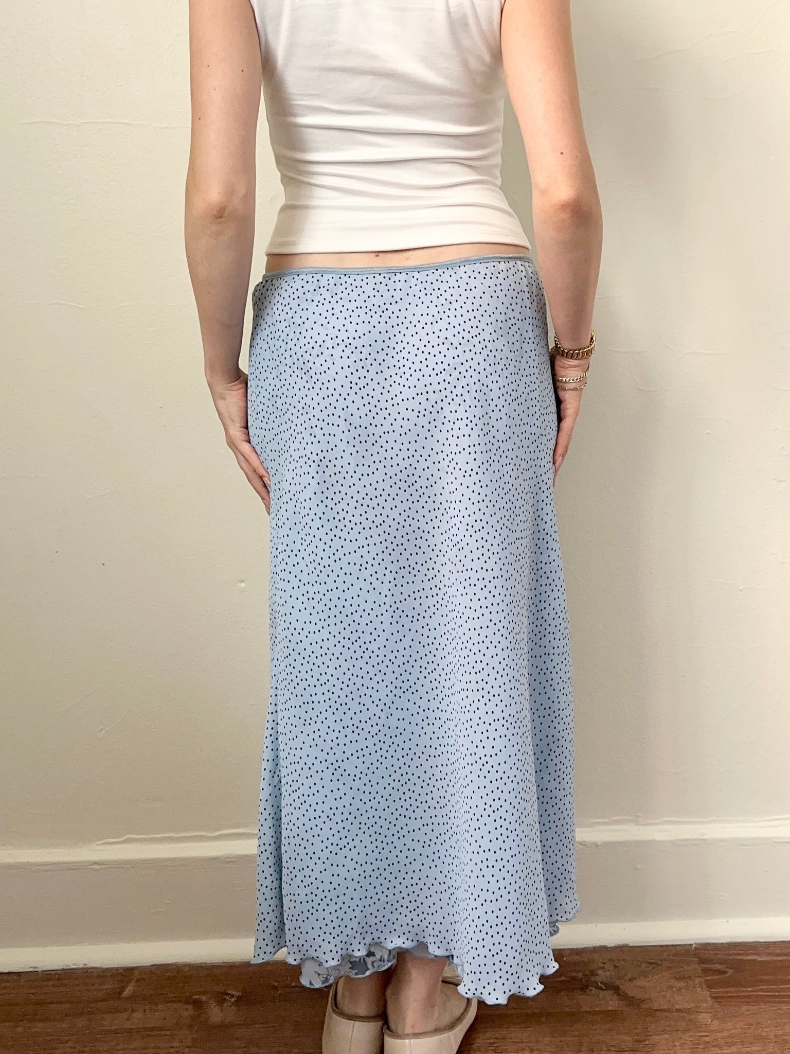 Vintage Blue Polka Dot Reversible Midi Skirt